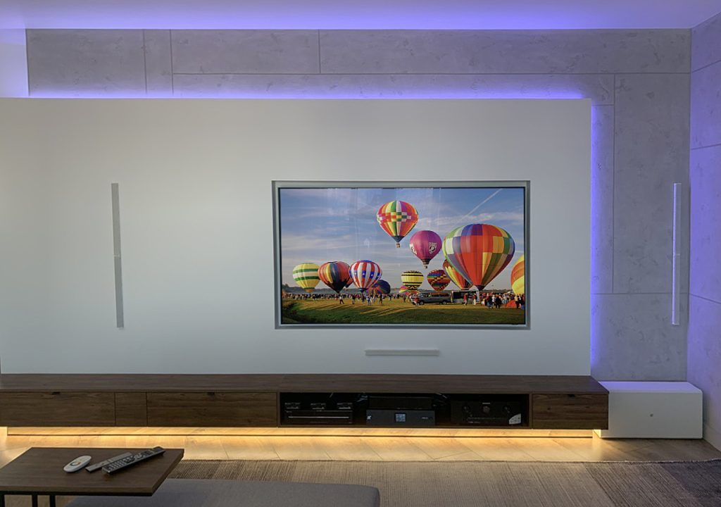 A modern belsőépítészeti megoldásokat letisztult vonalak és egyszerű színek jellemzik. A tökéletes minimalizmusnál rendkívül fontos, hogy minden a környezetbe simuljon, főként ott, ahol a szoba egyik fő rendeltetése a kikapcsolódás. Maguknak a hangszóróknak is a dekor részévé kell válniuk. Ennek egyik kiváló példája a Samsung által kifejlesztett Luxury LED for Home házmozi-rendszer. Itt több ultralapos K-array Vyper-KV52 hangszórót integráltak láthatatlan módon egy hatalmas LED-képernyő keretébe – így az erőteljes hangzás csak hallható, maga a hangforrás nem látható.