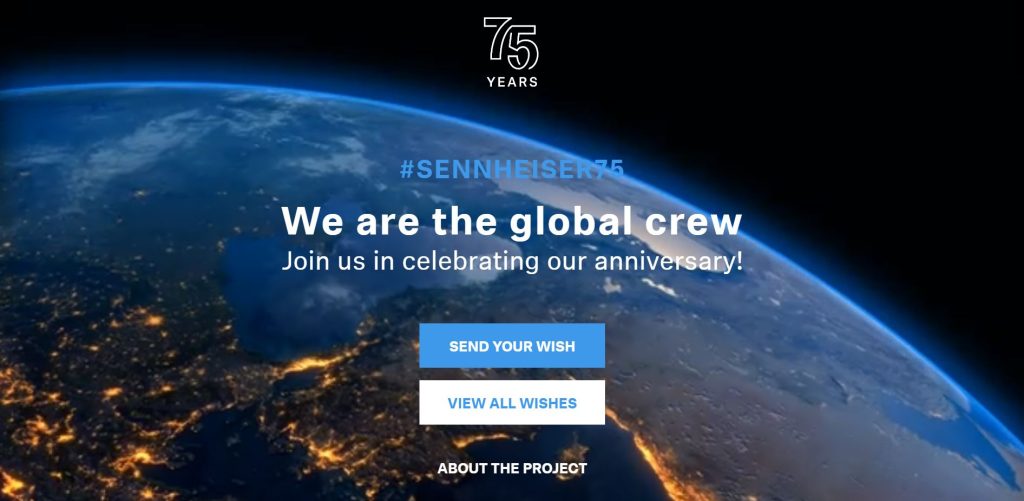 2020-ban a Sennheiser egy nagyon különleges alkalmat ünnepel – az audio specialista 75!-dik évébe lép. Amióta csak megalakult, a Sennheiser fáradhatatlanul a hangzás jövőjének formálásán munkálkodik. Innovatív termékei és megoldásai világszerte rendkívüli hangzásélményben részesítik az ügyfeleket/vásárlókat. Ezen nevezetes alkalomból a Sennheiser idén olyan embereket szólaltat meg, akik tevékeny szerepet vállalnak a varázslatos hangzás létrehozásában, miközben izgalmas akciókkal, versenyekkel és különleges termékmegjelenésekkel mond köszönetet minden Sennheiser-rajongónak.