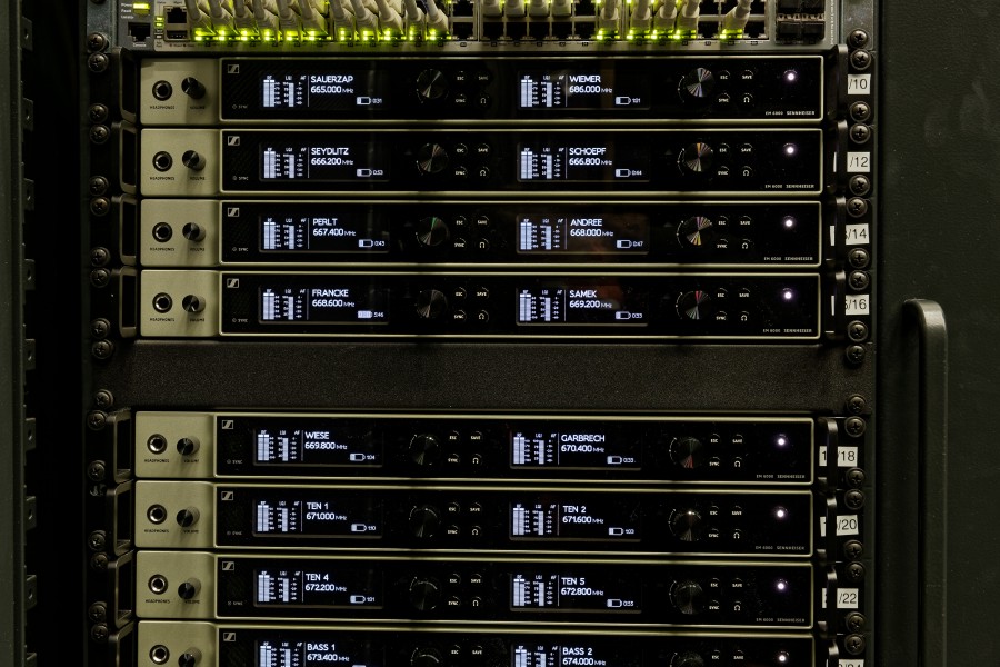 Drezdában az új Sennheiser Digital 6000 rendszerek egy másik gyártó csupán három éve használt digitális vezeték nélküli rendszerének helyébe léptek. A cserét mindössze pár óra alatt hajtották végre a színházi évad kellős közepén: „Kivettük a 19″-os rack-ből az összes régi berendezést, csatlakoztattuk a Sennheiser rendszereket, és minden rögtön működött” – emlékszik vissza Clemens Wannemacher.A vezető hangmérnök rengeteg egyéb pozitív dolgot is említ az új Digital 6000 rendszerekkel kapcsolatos gyakorlati tapasztalatairól: „Az akkupakkok használata rendkívül egyszerű. Eddig még sohasem kellett teljesen kihasználnunk a zsebadók esetében a hat órát jóval meghaladó maximális üzemidőt, és a töltők is tökéletesen működnek. A hátralévő akkuélettartam kijelzése megbízhatónak bizonyult, és a WSM szoftver gondoskodik róla, hogy a képernyőn mindig figyelemmel kísérhessük az akku kapacitásának alakulását.”