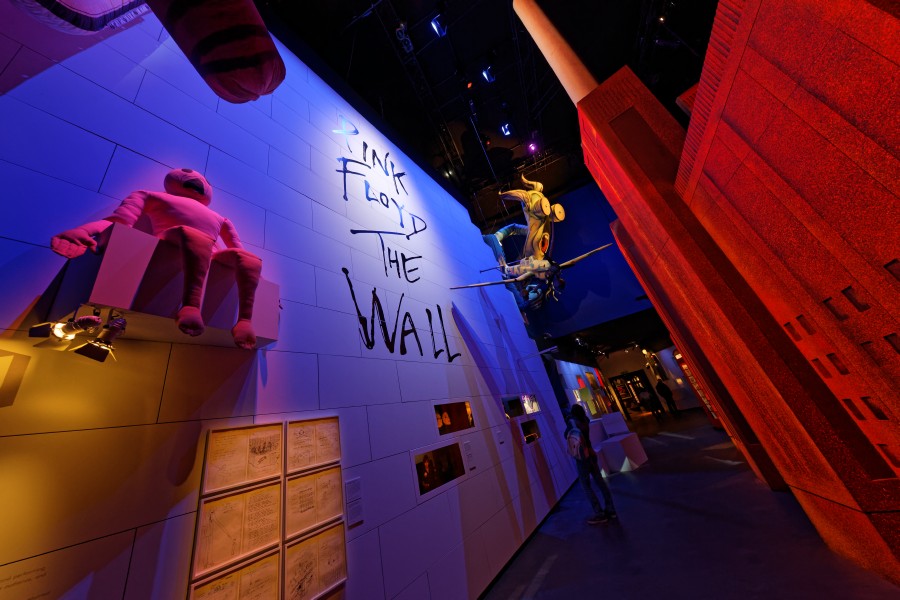 A „The Pink Floyd Exhibition: Their Mortal Remains” kiállítás október 15-jéig tekinthető meg a V&A-ben. Egy AMBEO rendszer szólaltatja meg a David Gilmour, Nick Mason és Richard Wright, valamint az egykori tag, Roger Waters, közreműködésével adott Live 8-as koncerten játszott Comfortably Numb című dalból készített új, immerzív hangzású mixet. (Fotó jogtulajdonosa: The Pink Floyd Exhibition: Their Mortal Remains)