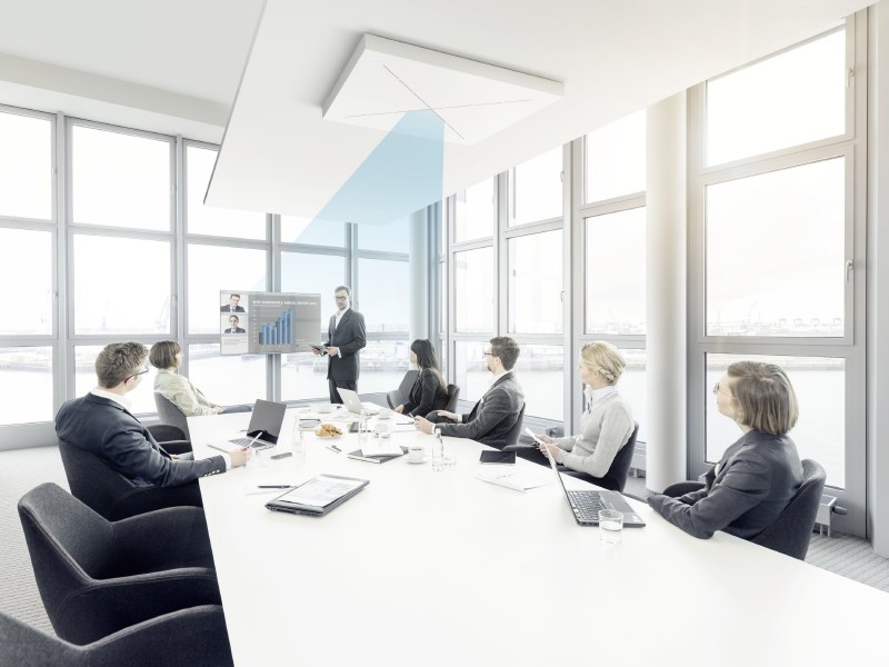 A Sennheiser bevezeti a TeamConnect Ceiling rendszert, az audio specialista fixen beépíthető TeamConnect konferenciarendszerének innovatív, új, mennyezetre szerelt változatát. A TeamConnect Ceiling – innovatív, gyakorlatilag láthatatlan SpeechLine Ceiling mikrofonjával – a klasszikus asztali rendszerek egy nagyteljesítményű, diszkrét alternatíváját kínálja közepes és nagyméretű konferenciatermekben. A mennyezetre szerelt mikrofon, a nyalábformálási (beamforming) technológia használatának köszönhetően, konferencia közben automatikusan a beszélő hangjára összpontosít. A TeamConnect Ceiling kiváló hangzást és nagyszerű beszédérthetőséget biztosító, kompromisszumoktól mentes megoldást kínál.
