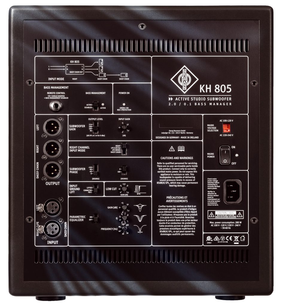 A KH 805 egy távvezérelhető 2.0/0.1 Bass Manager funkciót is kínál, amely számos különféle alkalmazásban történő használatot tesz lehetővé, például a hangfal basszus tartományának 18 Hz-ig történő kiterjesztéséhez, a hangfal-összeállítás maximális hangnyomásszintjének akár 8 dB-lel történő növeléséhez, vagy az LFE csatorna megszólaltatásához.