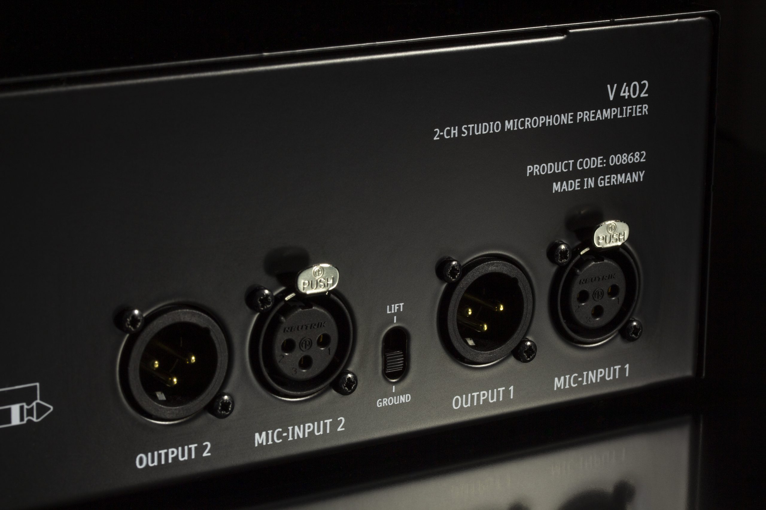 A V 402 kétcsatornás mikrofon-előerősítőt úgy tervezték, hogy megőrizze az eredeti jel hangzásbeli jellemzőit. Egyedülálló, transzformátor nélküli áramköre a mikrofonjelet a nemkívánatos elszíneződésektől és szonikus melléktermékektől (úm. jelzaj, illetve torzítás) mentesen erősíti. Bár az audio interfészekben alkalmazott egyszerű előerősítőként is használható, a V 402 képességeit magasabb elvárásokhoz igazították.