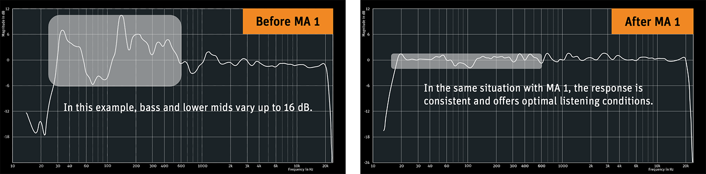 A Neumann fejlett DSP motorjával felszerelt új KH-mélynyomók hangzása az MA 1 Automatic Monitor Alignment (külön megvásárolható) szoftveren keresztül zökkenőmentesen az adott helyiséghez kalibrálható. Ezzel az eljárással a felhasználók a teremakusztikai jellemzők és a fáziskoherencia szem előtt tartásával optimalizálhatják komplett monitorrendszerüket – az analóg KH hangszórókat is beleértve.
