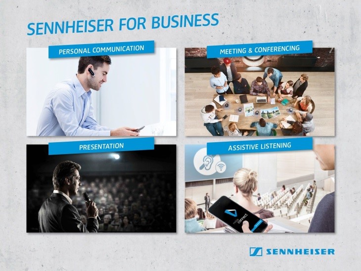 A széles kínálat kiemelt termékei: a mobilkonferenciákhoz kínált, többszörös díjnyertes SP 20 kihangosító; a max. 24 fős konferenciákhoz kínált vezeték nélküli, innovatív – és szintén díjnyertes – TeamConnect Wireless rendszer; a világ első kifejezetten beszédhez tervezett, digitális vezeték nélküli mikrofonja, a SpeechLine Digital Wireless; és a hallássegítő alkalmazásokhoz kínált WiFi alapú streaming megoldás, a MobileConnect. A Sennheiser korszerű headseteket kínál az UC (egységes kommunikációs) környezetet alkalmazó vállalatok számára is, köztük a nevezetes mérföldkőnek számító, nemrég bevezetett MB 660 UC modellt, amely az iparág első vezeték nélküli adaptív ANC headsetje, amit az egylégterű irodákban történő hatékony és kényelmes munkavégzés jegyében terveztek. A Sennheiser for Business termékválasztékban prezentációs audio eszközök és látogatótájékoztató rendszerek is szerepelnek.