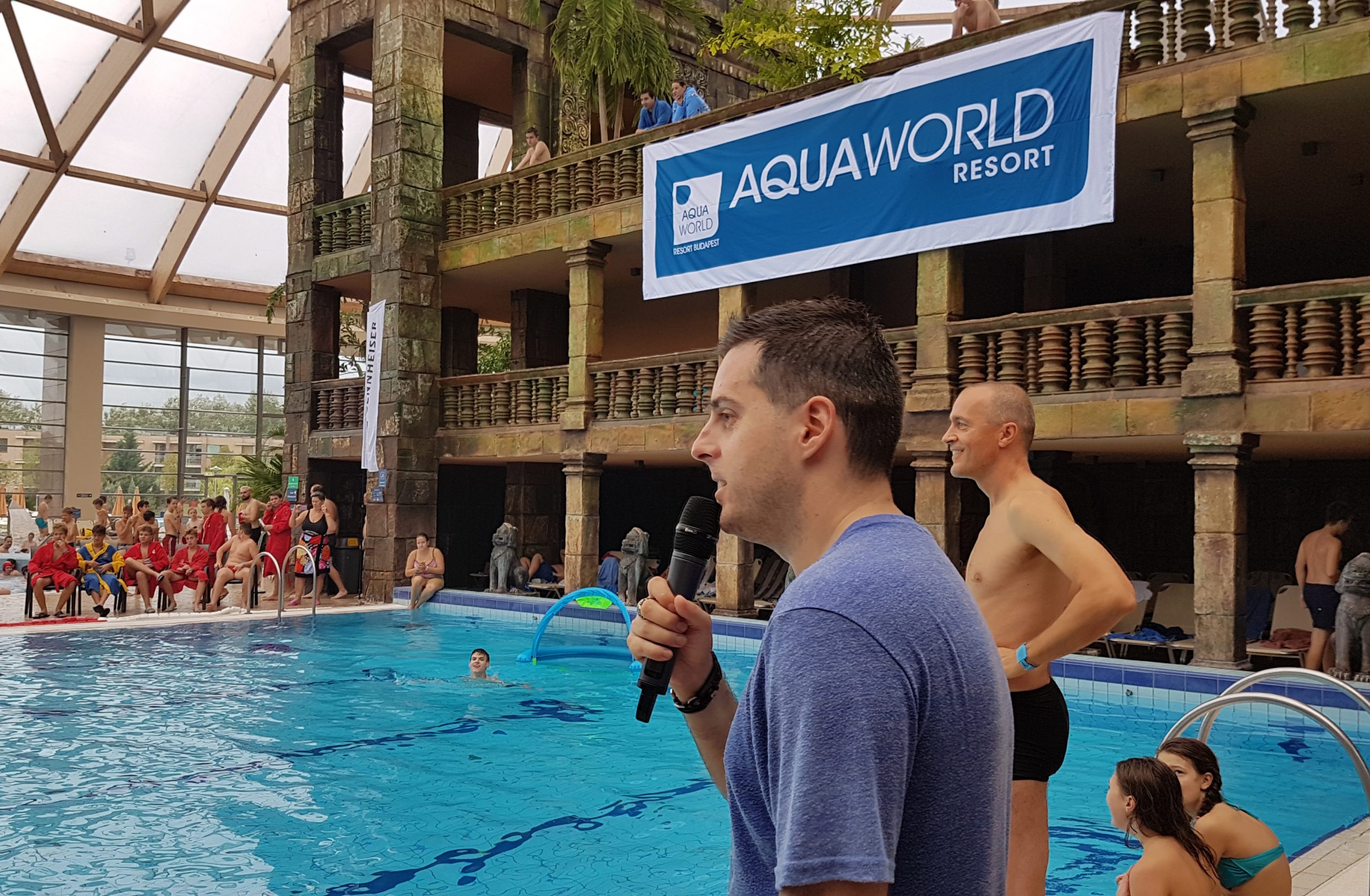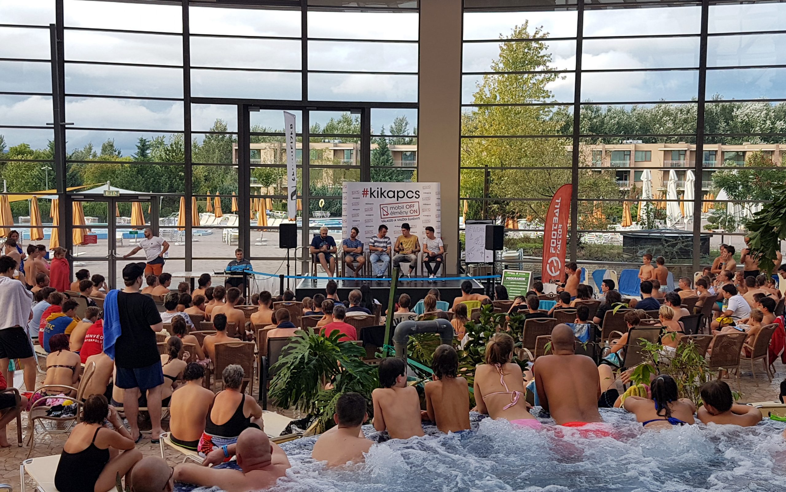 Elvárás volt, hogy a medence környezetében mindenki figyelemmel követhesse a játékot, Faragó Krisztián folyamatosan közvetítette az eseményeket.