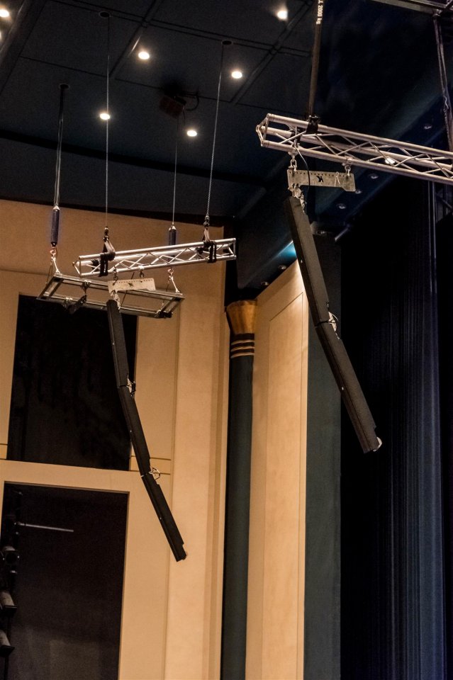A színpadon oldalsugárzóként (side-fill) Pinnacle-KR402 hordozható rendszert állítottak be, a front-fill szerepét pedig 4 db – Kommander-KA24 erősítővel meghajtott – félméteres Python-KP52 hangfal töltötte be.
