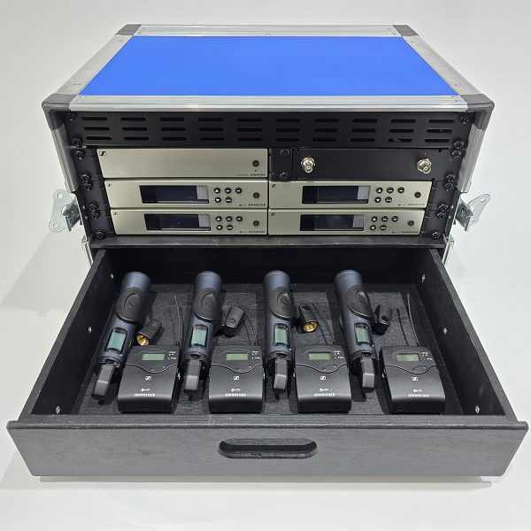 4 csatornás összeszerelt ew 100 G4-BASE-COMBO-B rack, EW-D ASA-val ( mikrofon fej és csíptetős mikrofon nélkül )