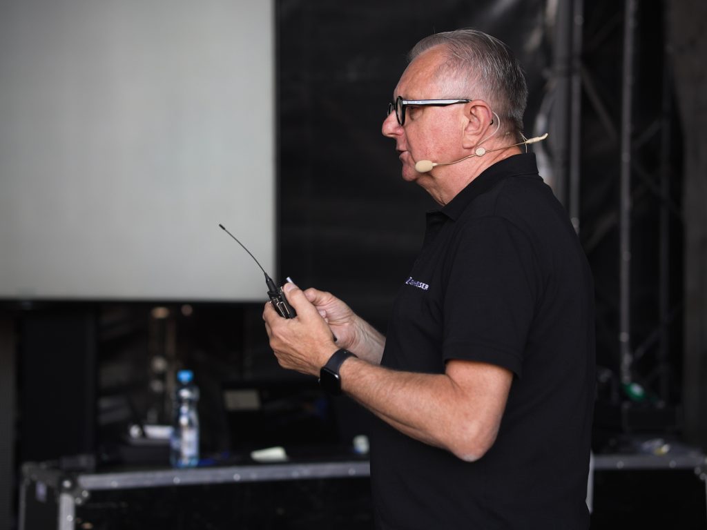 A szakmai programot különösen értékessé tette, hogy két nemzetközileg elismert szakember is részt vett az eseményen. Volker Schmitt, a Sennheiser vezető mérnöke életszerű példákon keresztül mutatta be a legújabb vezeték nélküli technológiákat, segítve a résztvevőket abban, hogyan fordíthatják le a mérnöki fejlesztéseket a mindennapi színpadi gyakorlatra. Gerhard Spyra, a rádiófrekvenciás berendezések főmérnöke pedig a mögöttes mérnöki számításokba engedett betekintést: prezentációja során nemcsak elméleti összefüggéseket tárt fel, hanem konkrét gyakorlati tippeket is adott a frekvenciakezelésről és a stabil működés biztosításáról.