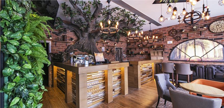 A kávézóban található fa és lámpa rendelésre készült és ezt az elgondolást követve a hangrendszernek is úgy kellett kinéznie, mintha egy meséből lépett volna elő.