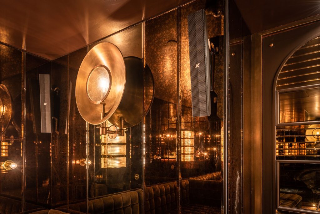 A földszinti vendéglő elülső részén ikerbárszékek és bárasztalok találhatók, többnyire rejtett K-array hangrendszer-elemekkel: egyedi gyártású falirácsokkal ellátott Vyper-KV25 mini line-array hangszórókkal és Rumble-KU26 mélynyomókkal, amelyek padlóra szerelt egyedi hangfalszekrényekből gondoskodnak a mélyfrekvenciás tartomány visszaadásáról. A legalsó szinten található, titkos tükörajtón keresztül megközelíthető VIP társalgó egy fényűző búvóhely. Ezt a helyiséget egy magas hangnyomásszinttel rendelkező DJ-rendszerrel szerelték fel, amely a következőkből áll: Python-KP52 line-array hangszórók lapos kialakítású tartókon és ülőbútorba szerelt Rumble-KU212 mélynyomók, amelyek beleolvadnak a diszkréten megvilágított, plüssel bevont környezetbe. A megfelelő jogosultsággal rendelkező és bulizni vágyó vendégeket egy lüktető éjszakai klub várja odalent.