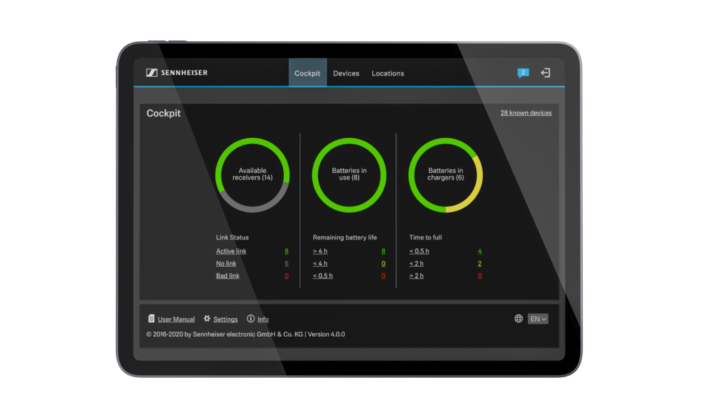 Az audio jelek továbbítása analóg kapcsolat (külső hangprocesszor, videokonferencia-kodek) esetén egy háromérintkezős Phoenix csatlakozón, míg digitális forgatókönyv esetén két Dante porton (elsődleges/másodlagos, 2xRJ45) keresztül történik. A tápellátást PoE (Power-over-Ethernet) biztosítja. A rendszer beállítása és az AV-munkafolyamatok kezelése legkönnyebben a Sennheiser Control Cockpit 4.0.0 használatával végezhető el. Ez a szoftver támogatja az evolution wireless G3 és G4, valamint a SpeechLine Digital Wireless sorozatot, továbbá a forradalmi Digital 6000 rendszert. Alternatív megoldásként a TeamConnect Ceiling 2 médiavezérlő rendszerekkel is kezelhető.
