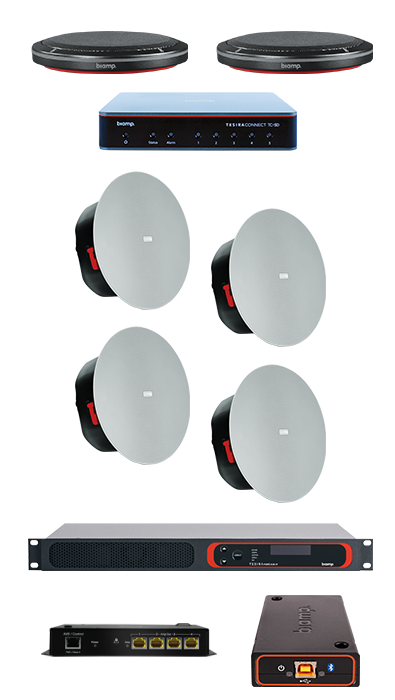 A Beamtracking® technológiát alkalmazó, díjnyertes Parlé mikrofonok a beszélő hangját követve lehetővé teszik a résztvevők számára, hogy a teremben szabadon mozogva beszédük mindvégig könnyedén hallható és érthető maradjon. A konferencia-környezetben kiváló hangvisszaadást kínáló Desono C-IC6 hangszórók az egész helyiségben tiszta hangzást biztosítanak. A TesiraCONNECT, valamint a Biamp egyedülálló egykábeles csatlakozási sémája segítségével pedig a telepítő szakemberek kihasználhatják a konfiguráció nélkül hálózatkezelés előnyeit. Ezenkívül a tartozékként mellékelt, előszerelt kábelekkel a tárgyalótermek fele annyi idő alatt készíthetők fel, mint a konkurenciatermékek használata esetén. A Biamp automatizált eszközeivel és intelligens jelprocesszoraival a tárgyalókban a telepítés 100%-os követkkövetkezetességgel valósítható meg, így minden téren tökéletes és optimális együttműködési élmény biztosítható.