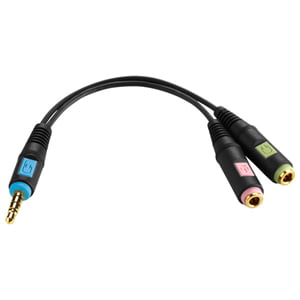 Combo audio adaptor: 2 x 3,5 mm stereo jack plug to 1 x 3,5 mm 4 pole jack plug