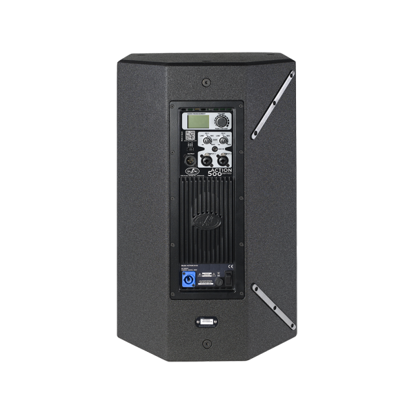 Aktív, 500 W-os, 15”, 2 utas teljes tartományú, 90×60 forgatható tölcsér, fekete