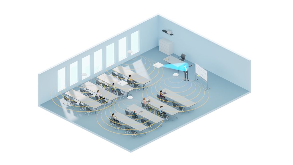 Számos tényező befolyásolja a kommunikációt, ha az nem ugyanabban a térben zajlik a felek között. Előfordulhat, hogy az online bekapcsolódó kollégákat nehezebben lehet érteni, zavaró a háttérben társalgó diákok hangja, a gépelés, a légkondi zaja, valamint a helyiség rossz akusztikája is befolyásolja az előadó és a hallgatóság interakcióját. Mivel a vállalatok és az oktatási intézmények jelenlegi telephelyeiket a megváltozott körülményekhez kívánják alakítani, a meglévő A/V-rendszerek átértékelése elengedhetetlenné válik.