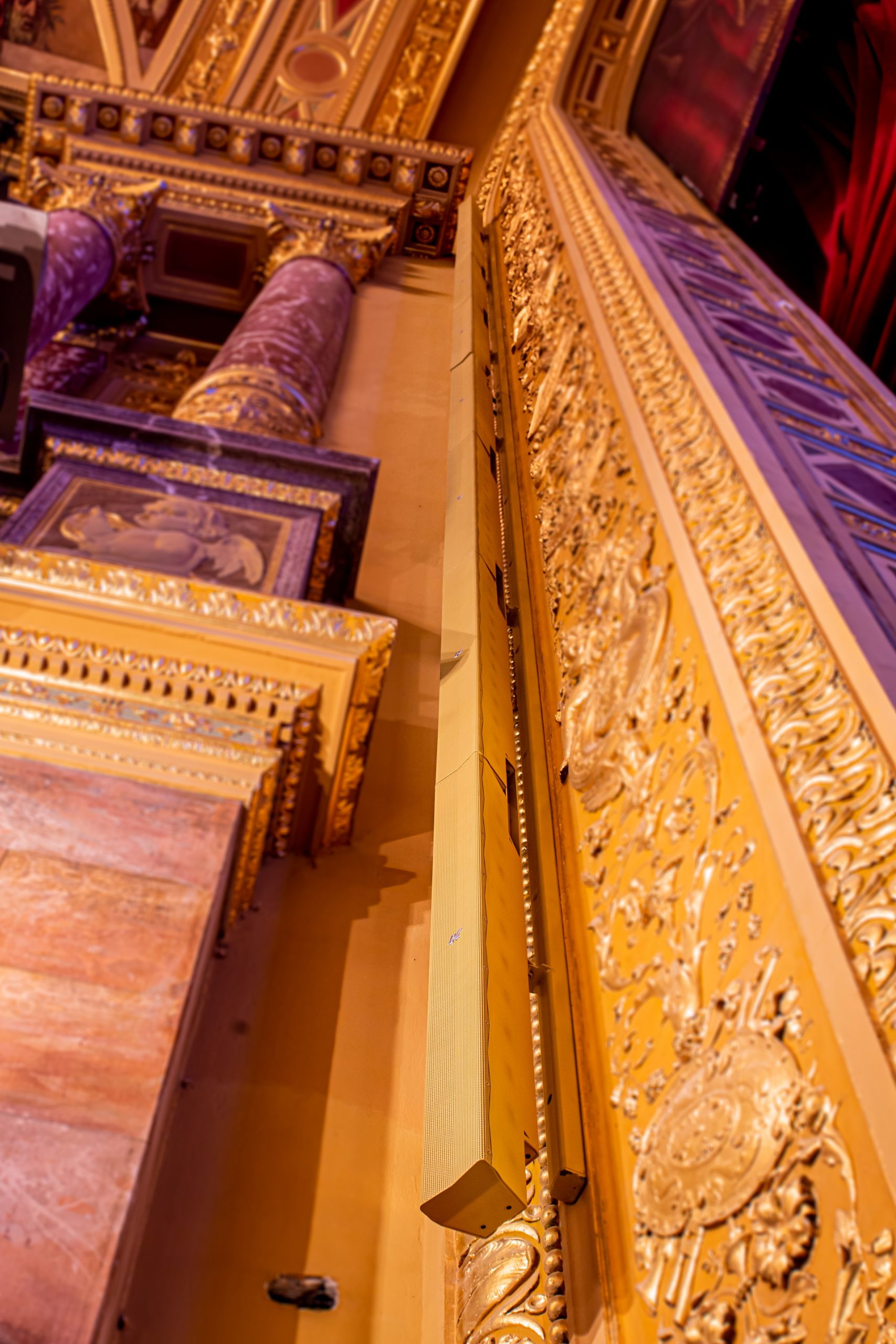 Nagy várakozással próbáltam ki ezt a koncepciót az EASE modell alakjában, és az eredmények már az első próbálkozások alkalmával is ígéretesnek tűntek. A főhangfalakat úgy állítottuk be, hogy a lehető legmagasabb pozícióba kerüljenek, hogy a zsöllyétől a felső páholysorig mindenkinek megfelelő hangzásban legyen része. A mélynyomókat a színpad melletti felső páholyoknál helyeztük el. A tervezés során a több kisebb egység használata mellett döntöttem. Nemcsak azért, mert ezeket könnyebb elhelyezni, hanem azért is, hogy a jövőre nézve több alternatív megoldásra adjak lehetőséget. A jelenlegi konfigurációban a közvetlenebb basszushangzás érdekében a zsöllye ülései alá telepítettünk néhány mélynyomót.