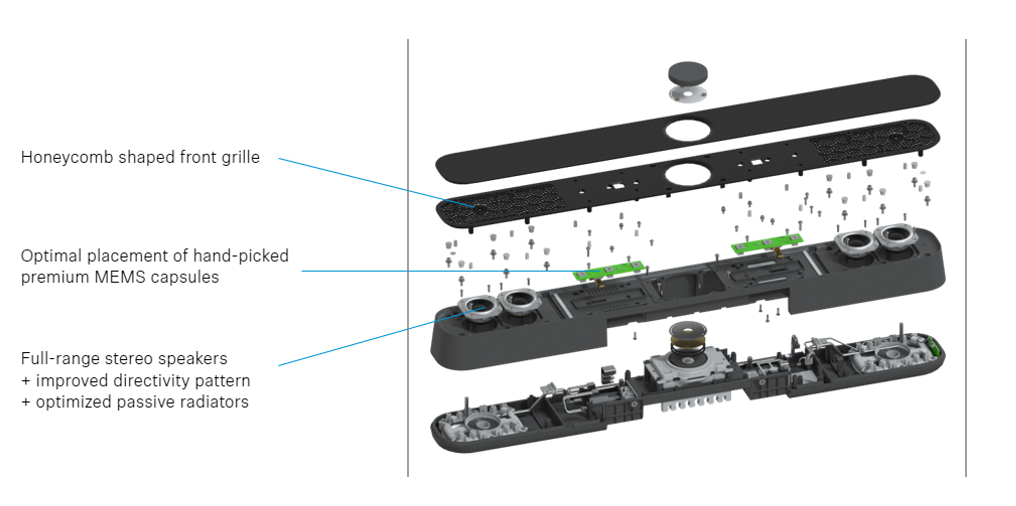 Ezúttal az értékelést követően a zsűri egyhangúlag a következőket mondta: „A kiváló minőségű kárpit elegánsan rejti el a nagyteljesítményű hangszórókat és mikrofonokat. A LED-gyűrűvel körülölelt központi kameramodul felhasználói felületként, valamint az egyébként diszkrét megjelenésű, ezért bármilyen környezetbe jól integrálható eszköz feltűnő dizájnelemeként szolgál.”