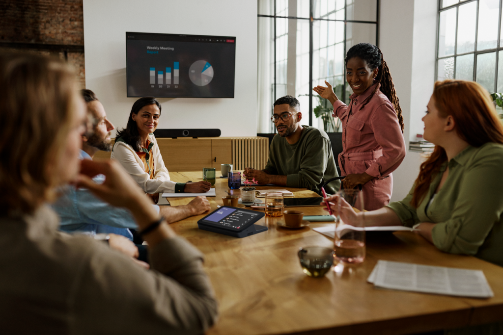 A TeamConnect Bar S egy sokoldalúan használható univerzális eszköz, melyet kisméretű tárgyalókhoz és közösségi munkavégzési terekhez terveztek.