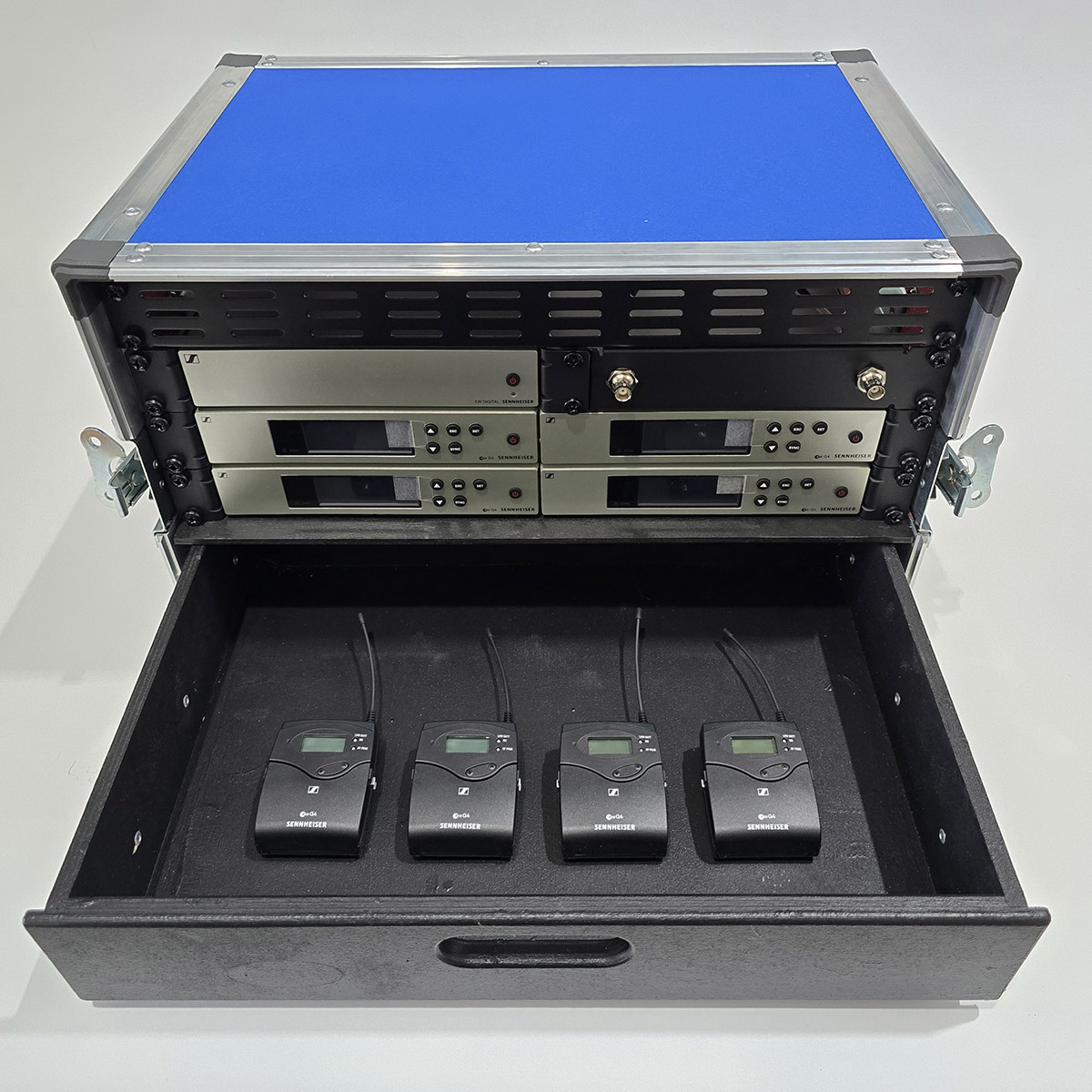 4 csatornás összeszerelt ew 100 G4-BASE-COMBO-B rack, EW-D ASA-val ( mikrofon fej és csíptetős mikrofon nélkül )
