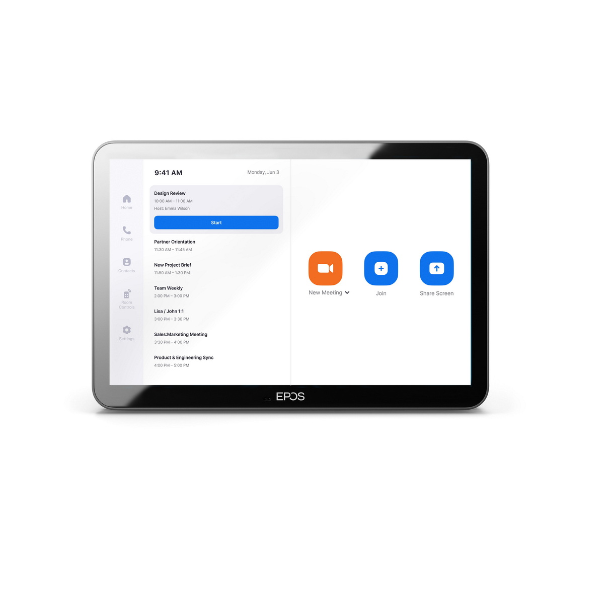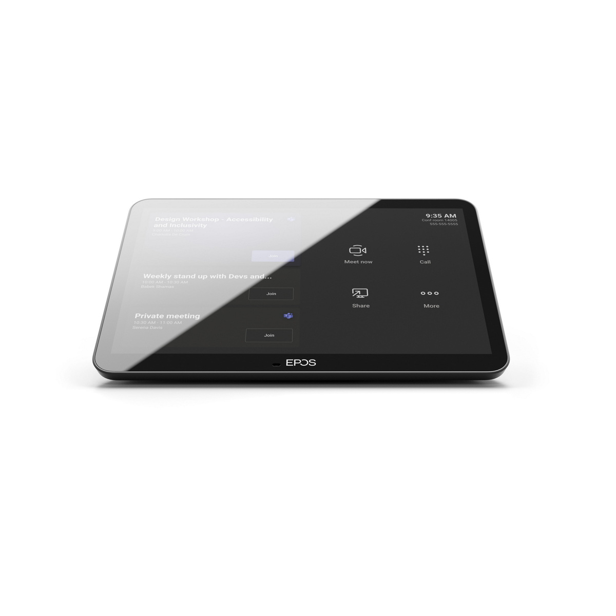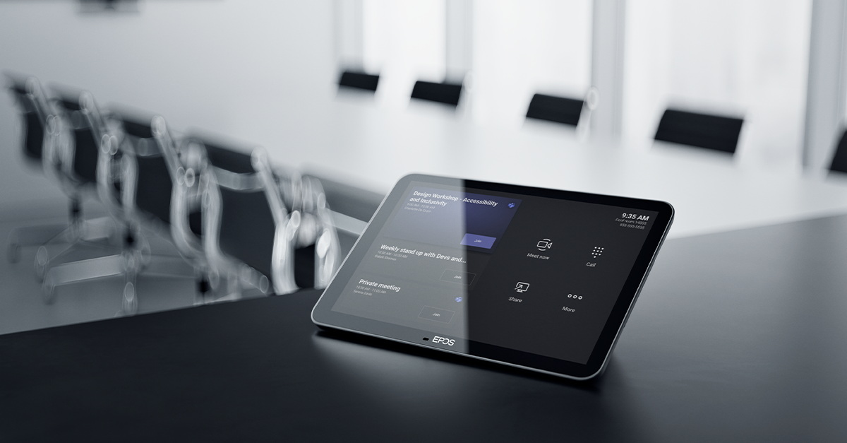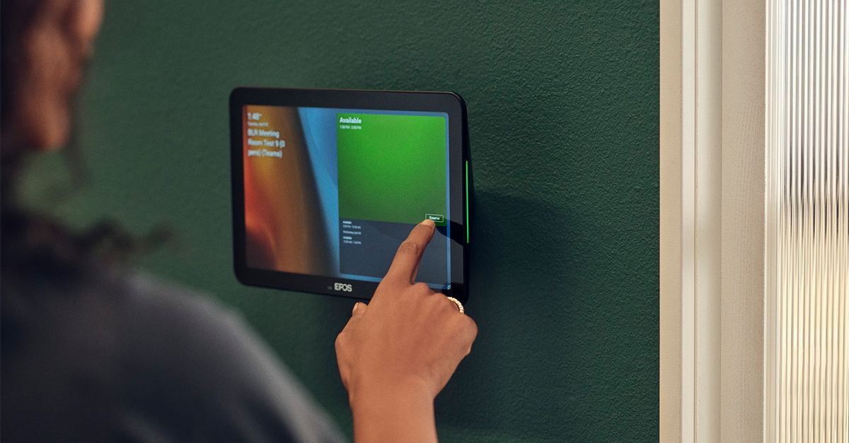 A falra szerelt ütemező panelként használva a kompakt érintőképernyő lehetővé teszi a felhasználók számára, hogy megtekintsék a helyszínt és az értekezlet részleteit, vagy akár a helyszínen foglalhassanak le tárgyalótereket. A táblagép oldalán található többszínű LED-jelzők mutatják az elérhető tárgyalótermeket.