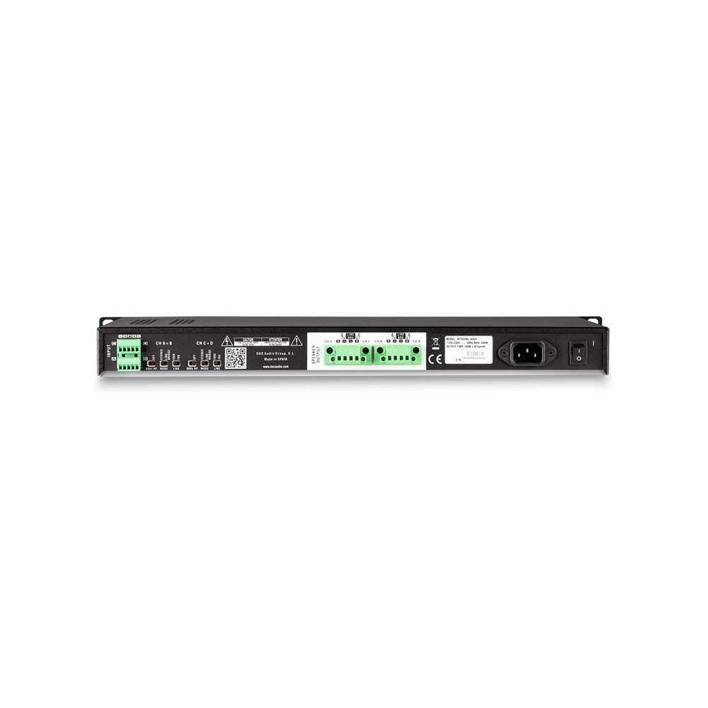 4 csatornás 100 W @ 4 ohm vagy 2 csatornás 200 W @ 100 V erősítő, 1U DIN