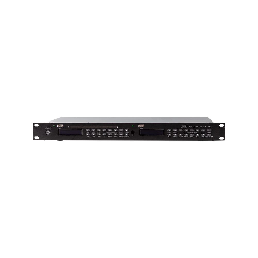 Kétcsatornás sztereó professzionális audioforrás, FM/AM tuner, USB-csatlakozók, BT és CD
