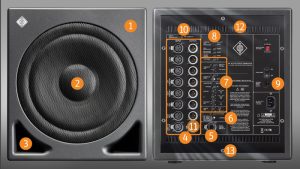 The KH 810 subwoofer is designed to complement Neumann’s extensive range of monitors, and can be used on its own, or daisy-chained to make larger systems capable of higher SPL. The KH 810 can be used in music, broadcast, and post production studios for tracking, mixing, and mastering. The cabinet can be positioned next to a wall or flush mounted into a wall due to the front mounted port, and can be mixed freely in multichannel systems with other loudspeakers from Neumann’s range.