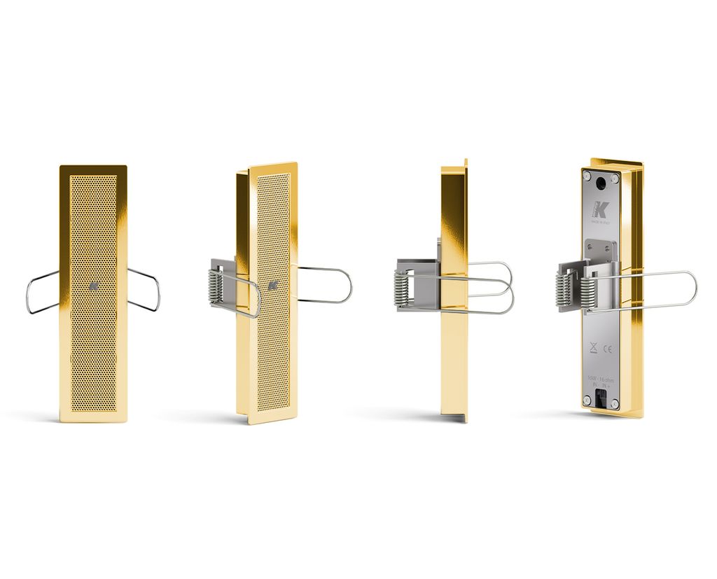 With a vertical coverage of 40° and horizontal coverage of 140°, it is our smallest model to feature PAT array technology. With a frequency response from 500 Hz up to 18kHz, KZ14 I provides clear audio reproduction and flawless intelligibility at a peak SPL of 98 dB, an impressive performance for a miniature loudspeaker. To complete the full frequency range of your audio systems, Lyzard loudspeakers must be combined with one or more of the Truffle or Rumble subwoofers and driven by one of our Kommander amplifiers. Lyzard loudspeakers are available in semi-matte black or white as standard, or any RAL colour, as well as several premium finishes, on request. Polished aluminium, 24K gold, rose gold or antique gold plating are among the most luxurious finishes.