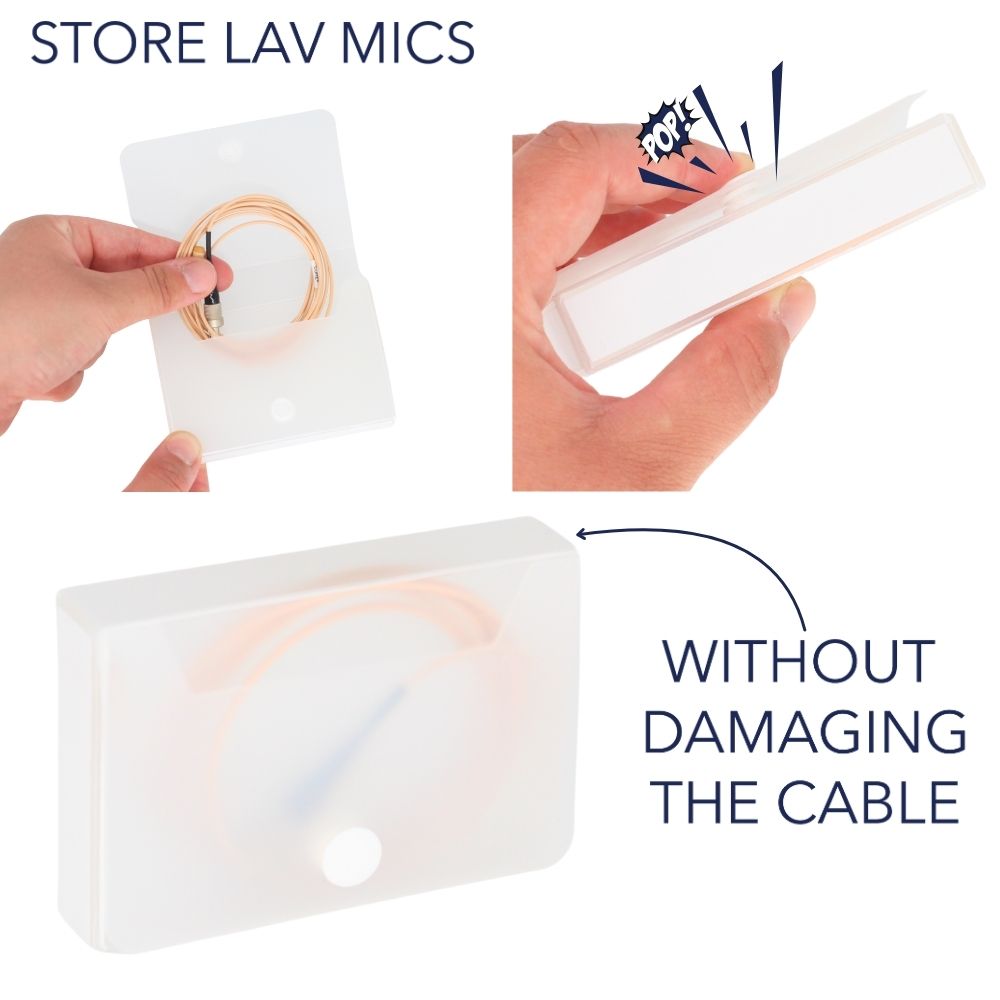 Patenttal záródó, feliratozható, áttetsző tároló tok (csíptetős mikrofonok, zsebadók és...