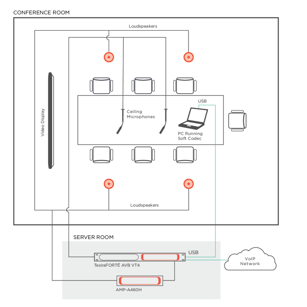 Legyen szó kis- vagy nagyméretű konferenciatermekről, többé nem kell az asztal közepére helyezett telefonba kiabálnod ahhoz, hogy hangod hallható legyen. A TesiraFORTÉ AVB VT4 digitális jelprocesszor birtokában könnyeden és hatékonyan bonyolíthatod a megbeszéléseket. Válaszd a hagyományos VoIP hívásokat a HD-1 tárcsázó használatával, vagy a Skype for Business™, WebEx™, illetve Google Hangouts alkalmazásokat használó videokonferencia kodekeket – és lépj kapcsolatba, akivel csak szeretnél, bárhol és bármikor. Ez a megoldás a Biamp AEC technológiájának hatékonyságára alapozva a vonal mindkét felén tartózkodó személy számára kiváló hangzásélményt és beszédérthetőséget kínál.