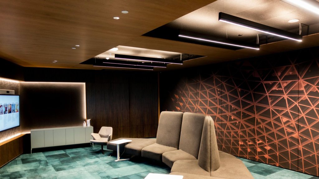 A jó munkahelyi közérzet másik elengedhetetlen eleme a megfelelő világítás. A lámpáknak amellett, hogy elegendő fényről kell gondoskodniuk, a Crestron-környezetben is működniük kell. A tervezésnél pedig figyelembe kell venni, hogy a megvilágítás alkalmazkodni tudjon az adott napszaknak megfelelő természetes fényhez – különös tekintettel arra, hogy az irodák hatalmas ablakai a városra néznek.